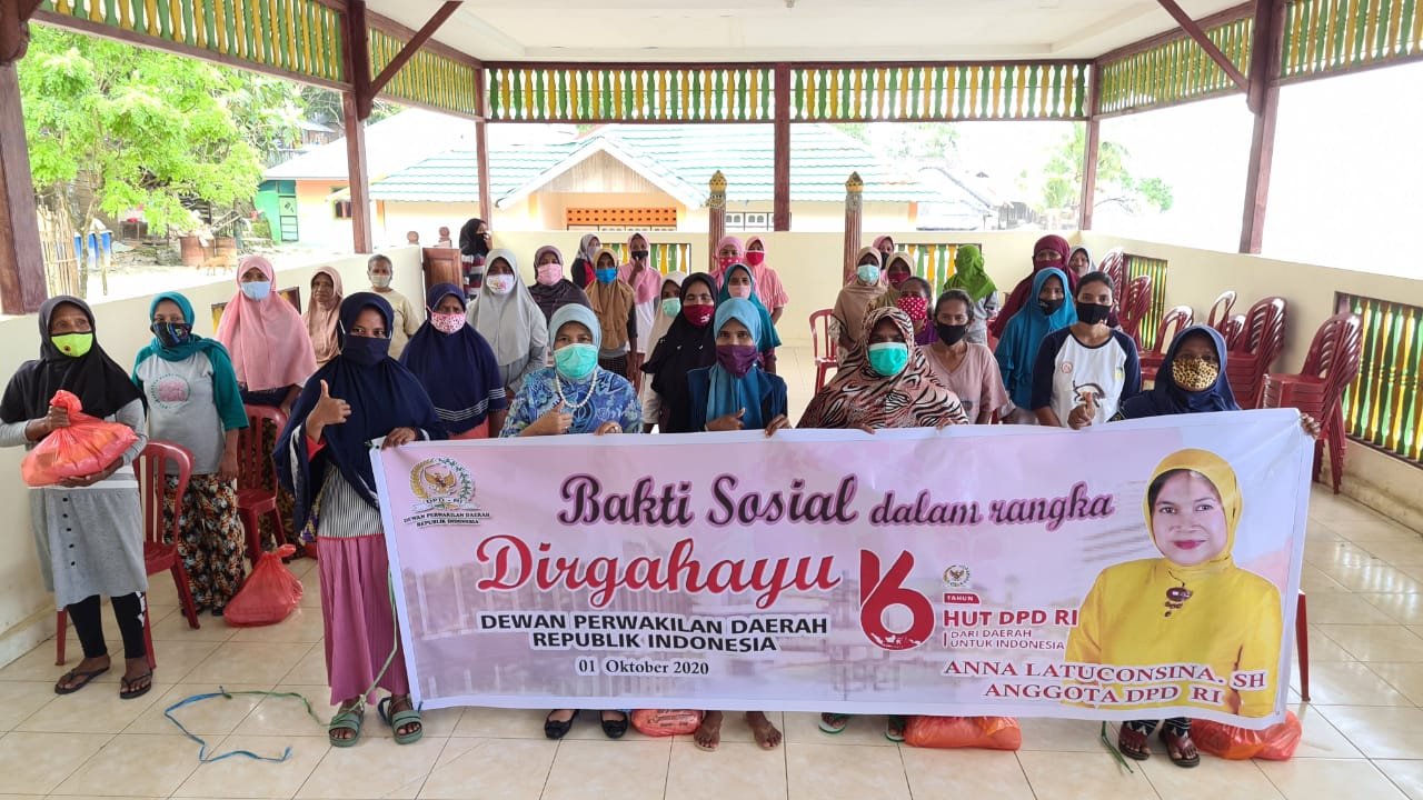 Anggota DPD RI Dapil Maluku Anna Latuconsina Bagikan Paket Sembako Buat Ratusan Janda Di Desa Tengah-Tengah, Dalam Merayakan Ulang Tahun DPD RI Ke-16 Tahun