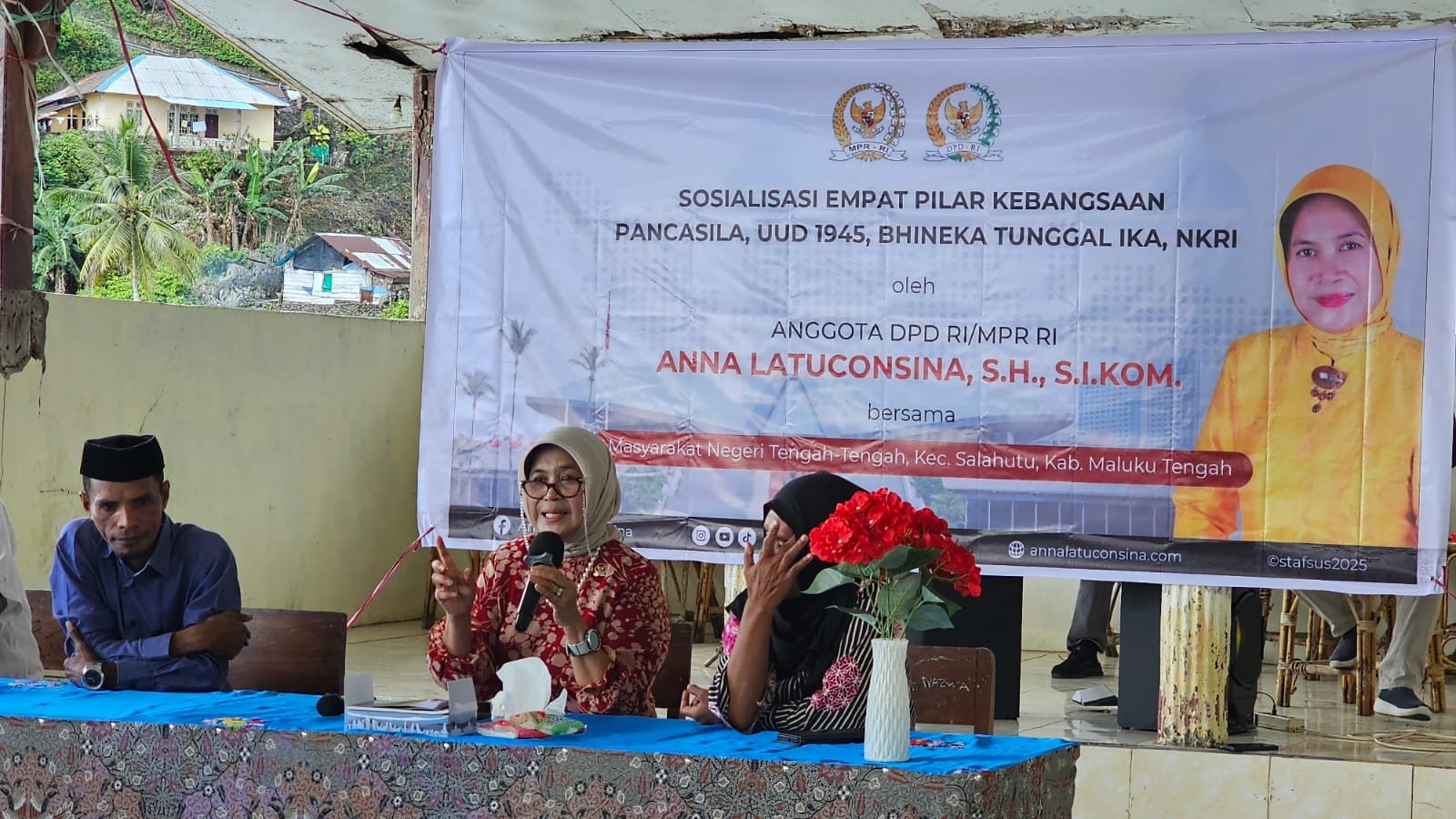 AMBON – Senator Anna Latuconsina kembali menggelar Sosialisasi Empat Pilar Kebangsaan. Pada kesempatan tersebut (22/04) sosialsiasi diselenggarakan di Baileo Negeri Tenga Tenga yang dihadiri oleh Raja Tenga Tenga dan Masyarakat.